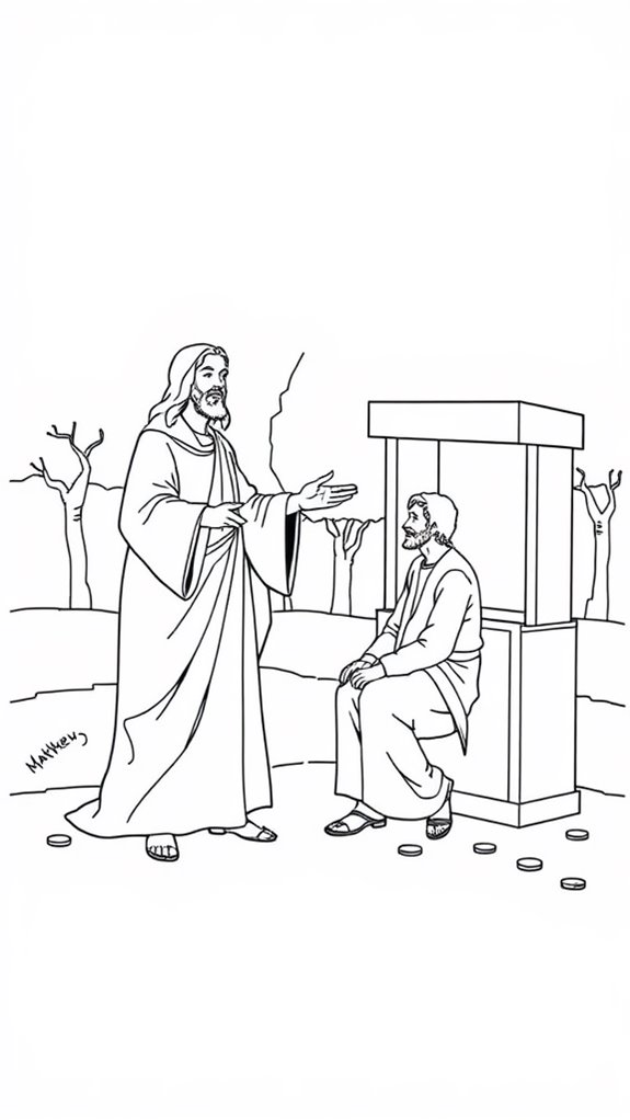 You are viewing some Jesus Calls Matthew Coloring Page sketch templates click on a template to sketch over it and color it in and share with your family and friends.
