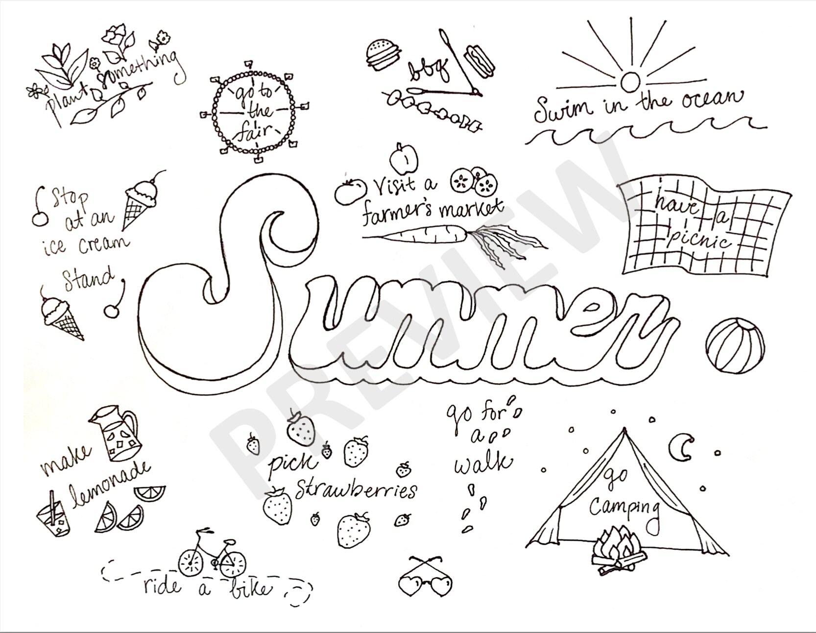 You are viewing some Summer Bucket List Coloring Page sketch templates click on a template to sketch over it and color it in and share with your family and friends.
