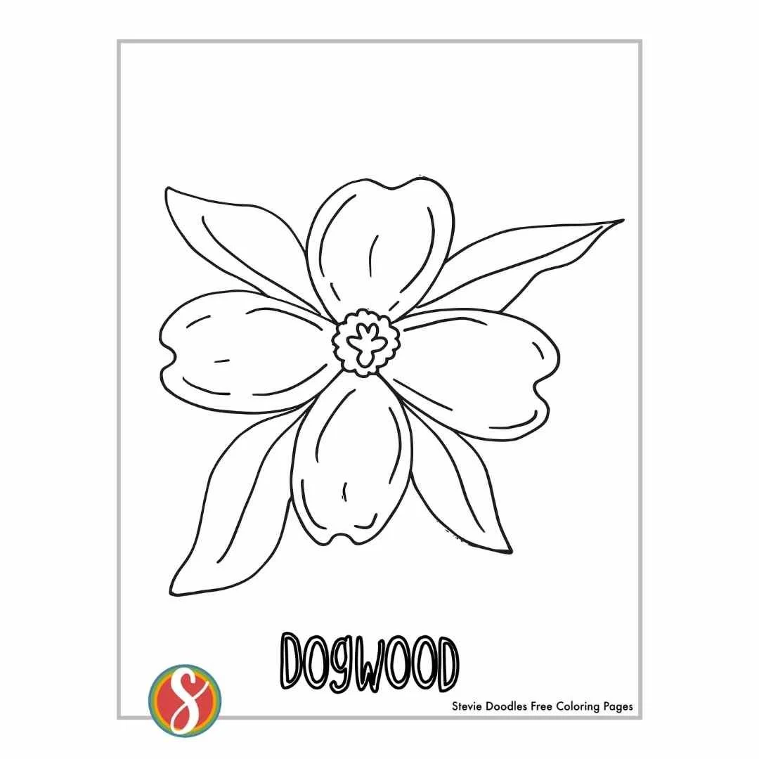 Bunga Dogwood Gambar Mewarnai Template