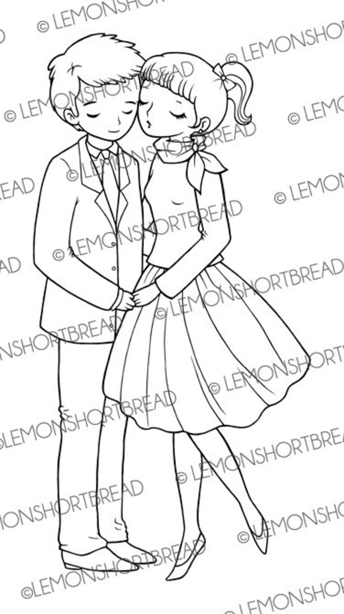 Digital stamp Kisses Kissing Couple digi coloring Page Download Template